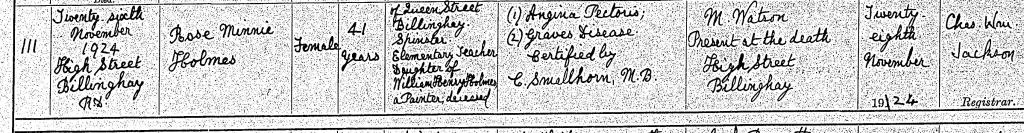 Rose never married; she died on 26 Nov 1924 aged 41 years in Billinghay, later in the same year after her parents.