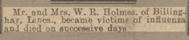 William and Myra both sadly died in March 1924 in Billinghay of Influenza, as reported on 31 March 1924 in the Leeds Mercury.