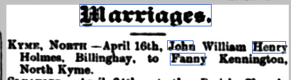 The question still to be answered was, was William part of my Holmes family. After researching William, the answer to that question is yes! I found William’s grandmother in my tree – Rebecca Holmes nee Skinner, she married John Holmes in 1806 in Billinghay.