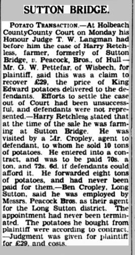 Although Harry had retired from Police work he still upheld the law and it was no surprise when I found his name associated with a court case the previous year in May 1934 for non-payment of potatoes. They were his own spuds!
