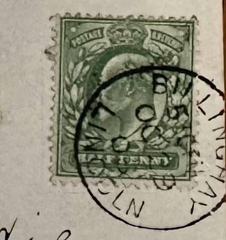 With this limited information, I started my search for the Curtis family in the 1901 census, living in Kirby on Bain, Woodhall. I soon found the family living at Grange farm, Kirby on Bain, Woodhall, as stated on the postcard in 1905. The census named the parents John William Curtis a farmer, his wife Mary – her maiden name established to be Lill, a daughter Elizabeth Sarah Curtis and son Micheal Lill Curtis. The search confirms that only these two children were born to John and Elizabeth, so it can be safely assumed the unmarried Miss Elizabeth Sarah Curtis was the recipient of the postcard.