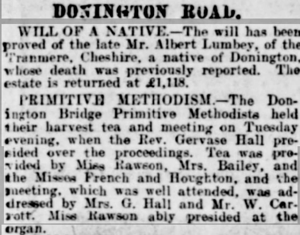 Acknowledging the likelihood this family were chapel folk, a search of the newspapers revealed many articles of the Curtis family being heavily involved in the Wesleyan chapel in Kirkby-on-Bain, and the article below confirms Sarah’s parent’s Mrs Curtis and Mr J W Curtis were definitely part of the congregation.