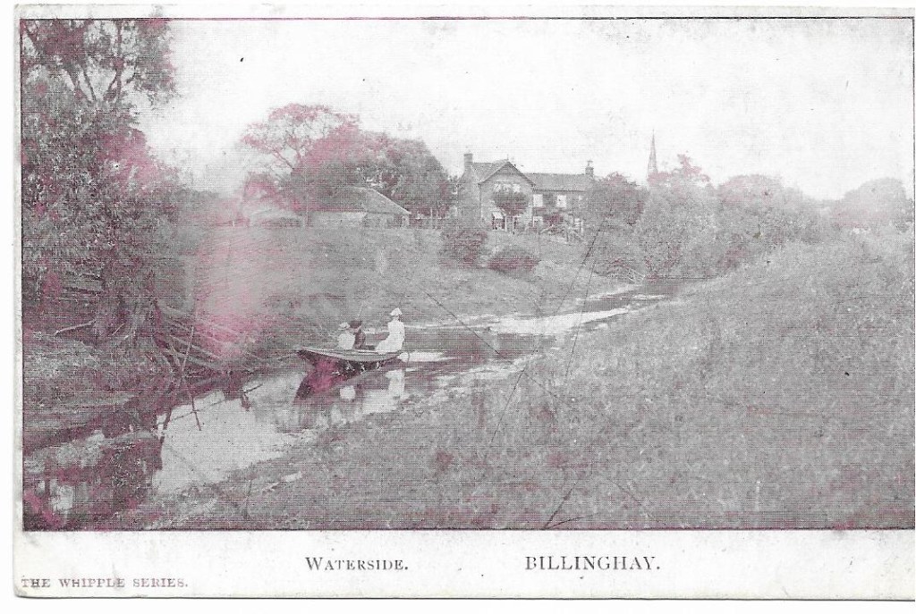 My most recent acquisition is this postcard, dating from approximately 1906 to 1911, entitled “Waterside – Billinghay.”
