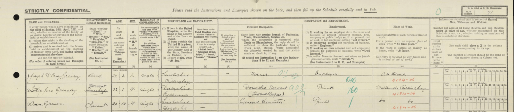 Now I had the family I did a backwards look at the 1891 census, this clarified the number of children John and Alice had, the census revealed at this point they had six children, and three servants living with them. A quick look at the 1881 census finds John was a farmer of 170 acres employing 5 men and 3 boys.