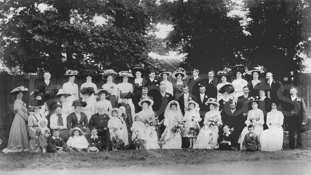Thanks to this discovery, I’ve been able to identify my own family members, frozen in time within this image. Seeing them all gathered on such a joyous occasion has been truly invaluable. Now, with confidence, I can name the majority of the front row—the bride and groom, the bridesmaids, the best man, and even the parents of the happy couple. A once-mysterious photograph has finally found its place in my family’s history.
