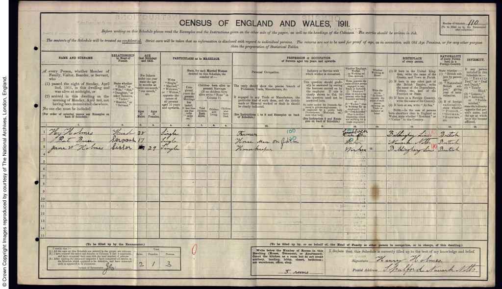 Yet, despite this compelling connection, I still wanted further evidence to solidify my findings. That confirmation came directly from the newspaper article, which listed attendees, including “Mr. H and Misses Holmes of Spalford.” This entry was a crucial piece of the puzzle—this wedding according to the newspaper took place in 1910, I did a search of the 1911 census, and. I found my grandmother, Jane Watts Holmes, she was listed as the housekeeper for her brother, Henry Holmes, and they were both residing in Spalford, Newark, Nottinghamshire—the very location referenced in the newspaper article.