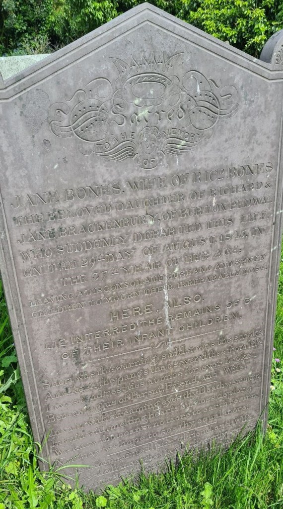 Richard’s wife Jane died on 29 August 1945; this is her headstone, in Billinghay, erected by Richard. It says, Daughter of Richard & Jane Brackenbury of Burton Pedware. Leaving a disconsolate husband and 7 children.