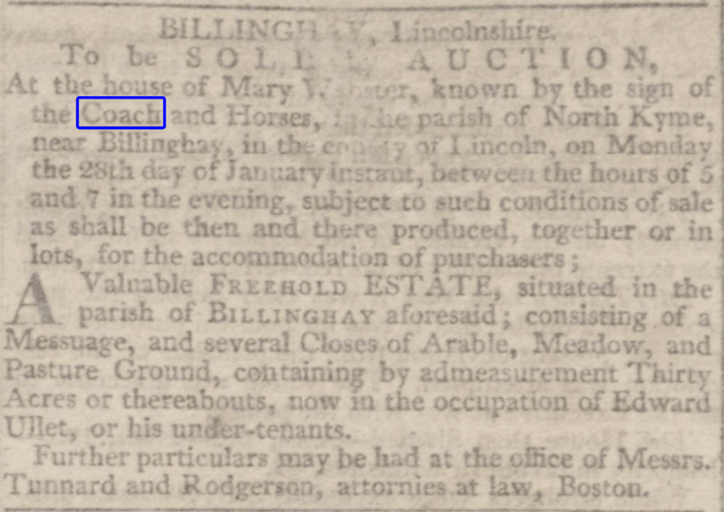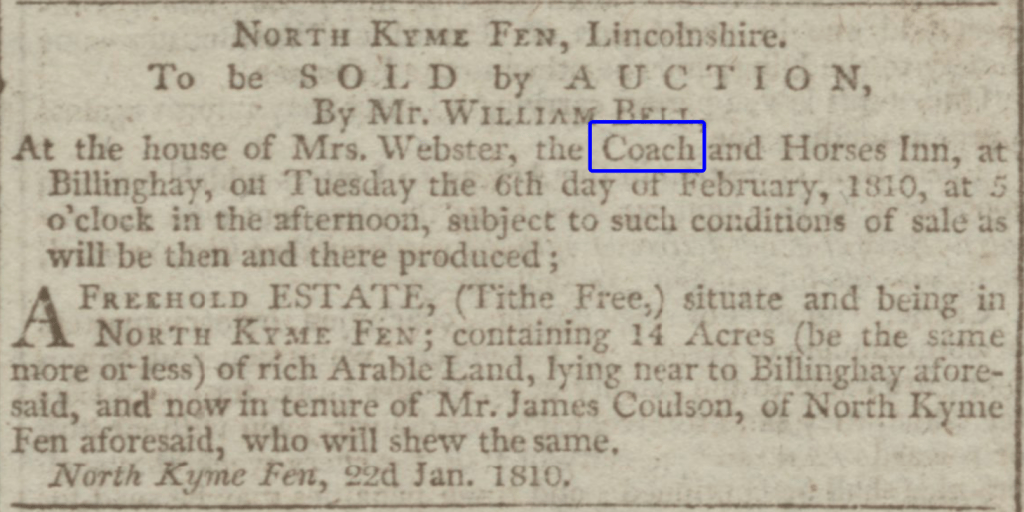 Fortunately another newspaper article reported in the Lincoln Rutland & Stamford Mercury in 1811. Names her Mrs Mary Webster we have a landlady and her name. In 1816 Mary Webster is recorded in the Lincoln Rutland & Stamford Mercury.