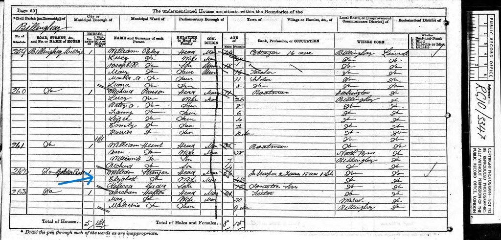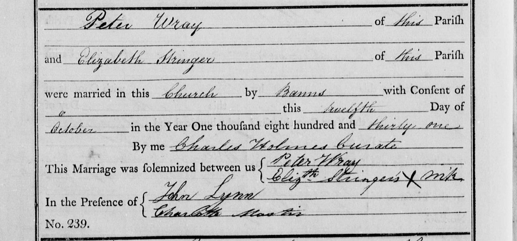 Elizabeth Stringer was born in 1813 in Billinghay, the daughter of John Stringer and Sarah Mastin. At the age of seventeen, she married Peter Wray. Elizabeth lived a long life and passed away in Billinghay on 31 October 1894, aged 80.