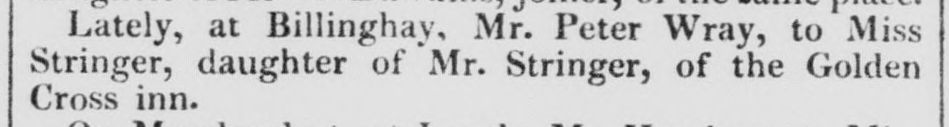 In 1831, there is evidence that John Stringer was still running the Golden Cross Inn, as shown by a wedding announcement for the marriage of Miss Stringer, described as the daughter of Mr. Stringer of the Golden Cross Inn. Confirming that John Stringer was still the innkeeper at that time.