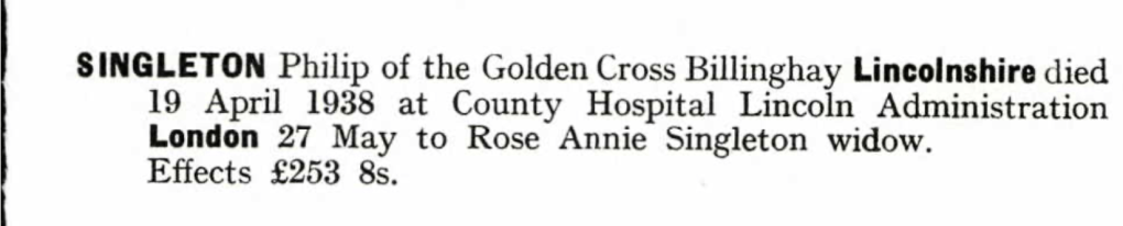 Philip Singleton’s obituary was reported in the Lincolnshire Echo on 23 April 1938.