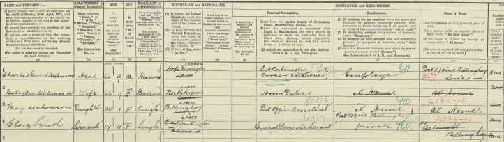 This also explained why Clara had sent the card from the Billinghay Post Office; she was living and working there! Beginning my search into Claraâs life, I returned to the 1921 Census, where her name had first appeared in connection with the Atchinson household. From there, I was able to start uncovering more about Clara Smith.