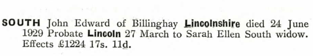 John Edward South was born in Billinghay, December 1851, the son of Edward South and Sophia Lowe. Edward worked as a wheelwright, but his early death in 1855 left Sophia widowed with a young son to raise alone.